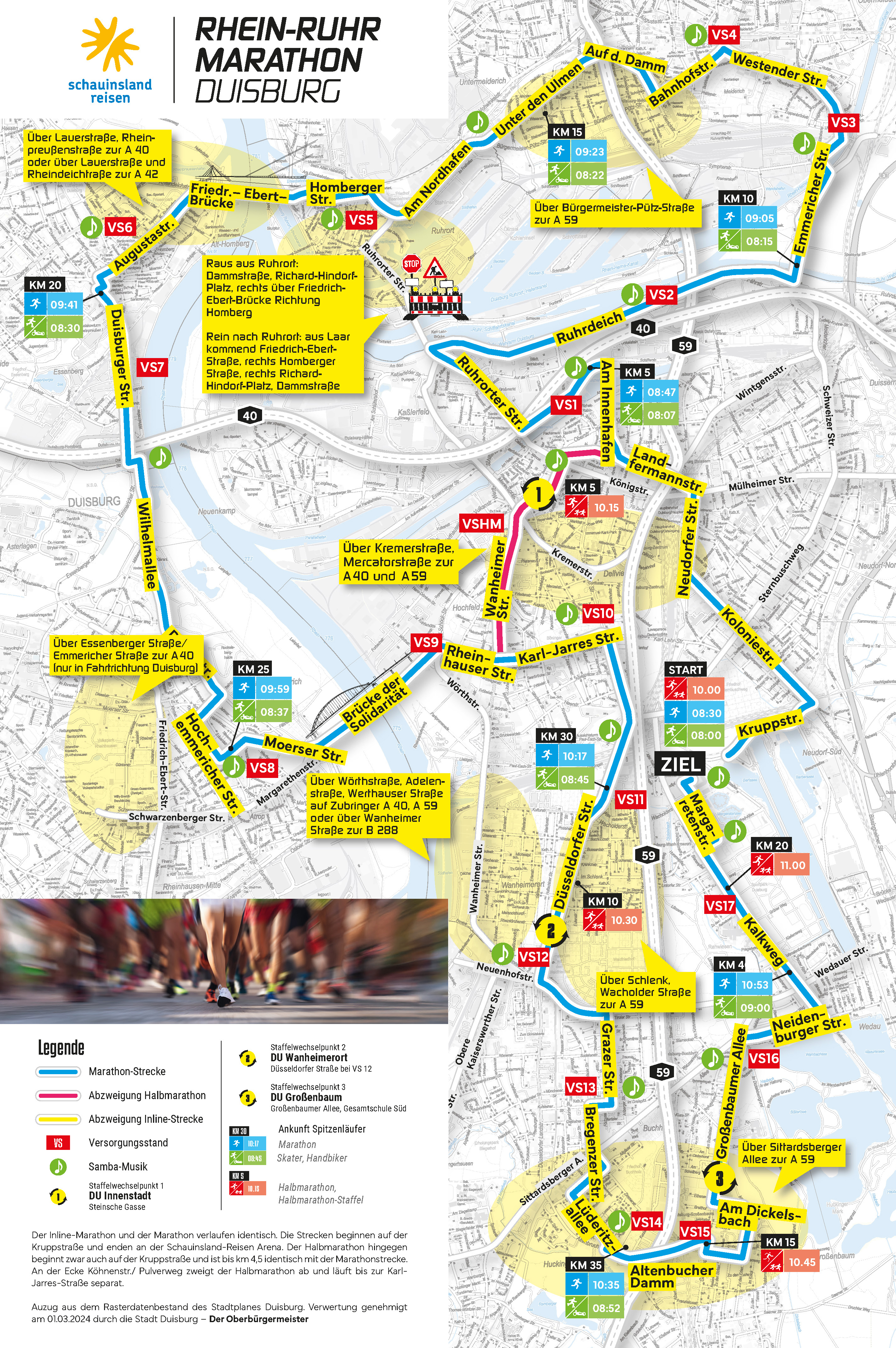 Jeder Kilometer ist gut sichtbar ausgeschildert, und alle fünf Kilometer stehen Uhren zur Orientierung bereit. Entlang der Strecke befinden sich Kontrollpunkte mit Kampfrichterinnen und Kampfrichtern des Leichtathletik-Verbands Nordrhein, Region Nord.